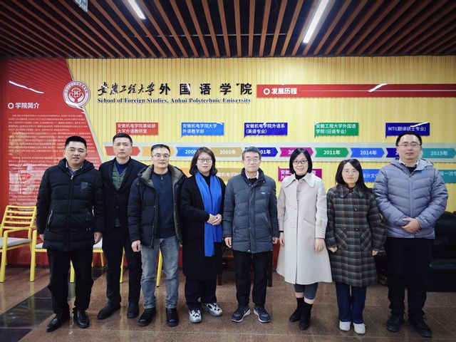 本网讯 3月6日,亳州学院外语系主任王俊凯、大外教研室主任汪丽萍来外国语学院进行调研交流。副院长(主持工作)唐雪梅、副院长李新国、实验中心负责人卢祥、大外二部主任徐鹏等参加了此次交流活动。