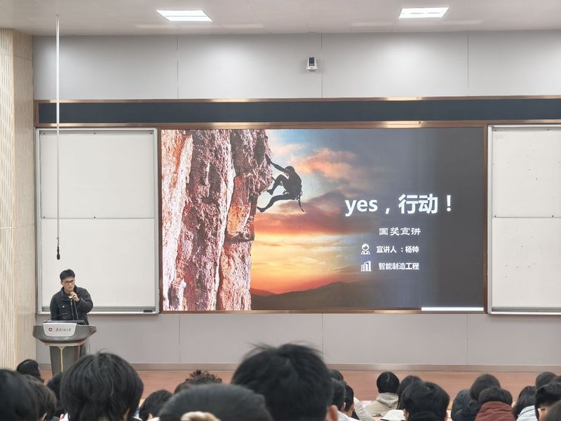 李文江作总结发言。他对以上同学取得的优异成绩给予了高度评价,希望同学们以他们为榜样,珍惜大学学习机会。树立远大目标、付诸实际行动、高效自律、执着追求成功,相信大家一定能不断取得进步,成为国家的栋梁之才。她还讲述了人工智能专业2024届毕业生、国家励志奖学金获得者、校十佳大学生袁政卿的励志求学之路,现场同学深受鼓舞。