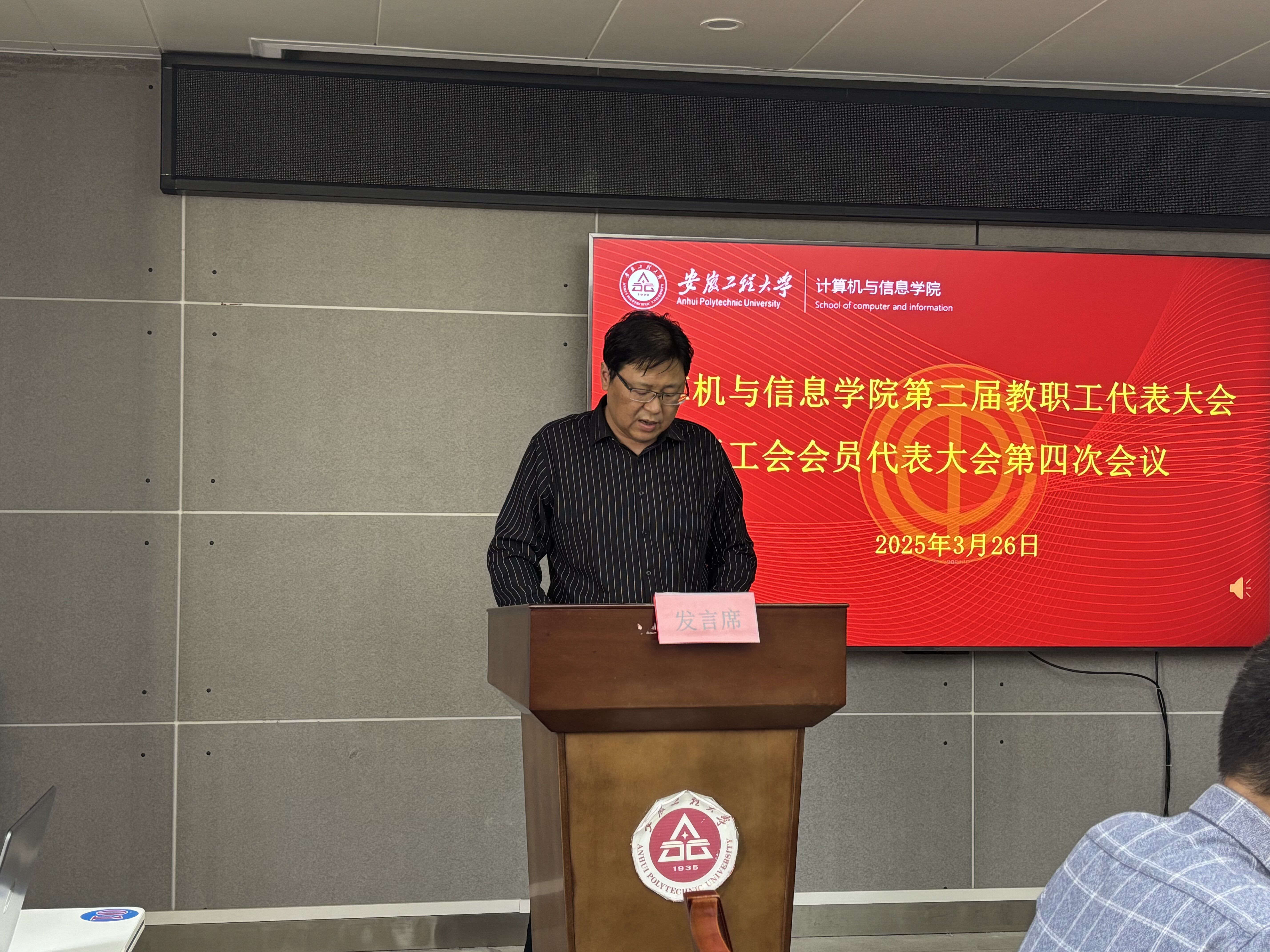 大会在庄严的国歌声中拉开帷幕,院长汪军代表学院作题为《同心共担新使命奋力逐梦新征程》的工作报告,报告从人才培养质量、学科与队伍建设、科学研究与社会服务能力、学生工作和综合管理工作等方面总结了学院2024年的工作,并提出了学院2025年工作发展思路和目标任务。他指出,全体成员要以学院的发展为己任,锚定目标、团结奋进、勇毅前行。学院分工会主席吕寅作题为《踔厉奋发笃行不怠持续推进学院高质量内涵式发展》的分工会工作报告。