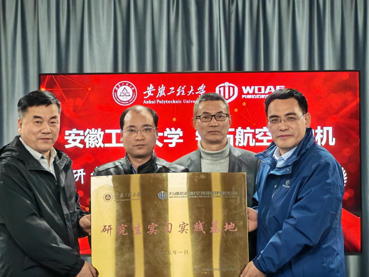 本网讯 3月31日,机械与汽车工程学院院长王建平一行赴芜湖钻石航空发动机有限公司开展研究生实习实践基地建设和产学研对接等活动,双方举行了基地揭牌仪式、项目签约仪式。公司总经理郑君、副总经理胡崇波代表公司签约,产业研究院负责人和项目负责人出席了本次活动,湾沚区汽车零部件协会秘书长欧邦南受邀出席并见证了整个过程。