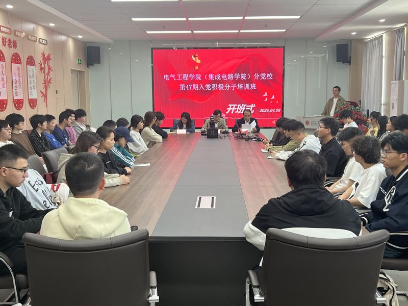 本网讯 4月8日,电气工程学院(集成电路学院)第47期入党积极分子培训班开班式在国际工程师学院校区206会议室隆重举行。学院党委书记杨会成、党委副书记迟传德、组织员滕敏出席活动,近三百名学员通过线上线下相结合的方式参加。开班式由培训班班主任阳岚主持。