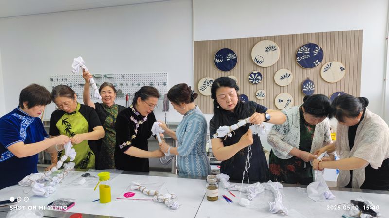 本网讯 5月10日,学校旗袍协会全体会员在会长邬红芳教授的带领下,走进纺织服装学院手工印染实验室拼布实训基地,开展了一场以“传承非遗·致敬母爱”为主题的母亲节专题活动——传统扎染技艺体验课。此次活动不仅是一次手工艺术的沉浸之旅,更是一场传统文化与女性美学深度交融的文化盛宴。