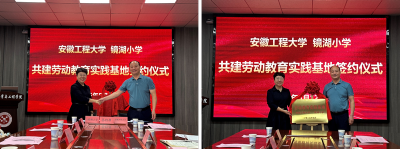 本网讯 为深入推进大中小学思想政治教育一体化建设,打造党团队一体化育人链条,学校与镜湖小学依托梦溪农场和劳动教育先锋示范班合作共建劳动教育实践基地。5月12日,双方在B216举行签约仪式,校纪委副书记、纪委办主任、劳动教育先锋示范班指导老师郭广春、校管委会常务副主任陈阳、教务处副处长胡孝忠、学生处副处长杜松涛以及材料学院、纺服学院、生食学院团委书记等参会,镜湖小学教育集团党支部书记、校长赵玲、党支部专职副书记张学梅等参加。仪式由材料学院党委副书记方玖胜主持。