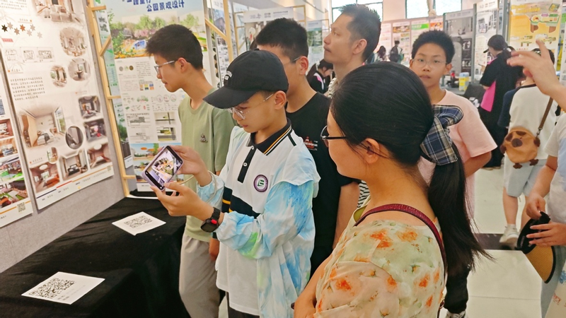 本网讯 5月25日至26日,来自芜湖一中、芜湖三中、荟萃中学、中江中学、芜湖田家炳中学以及安徽师范大学城东附外校区初中的学生们,在家长的陪同下,来到我校设计学院参观2025届本科毕业设计展,开展了一场富有启发性的学习交流活动。