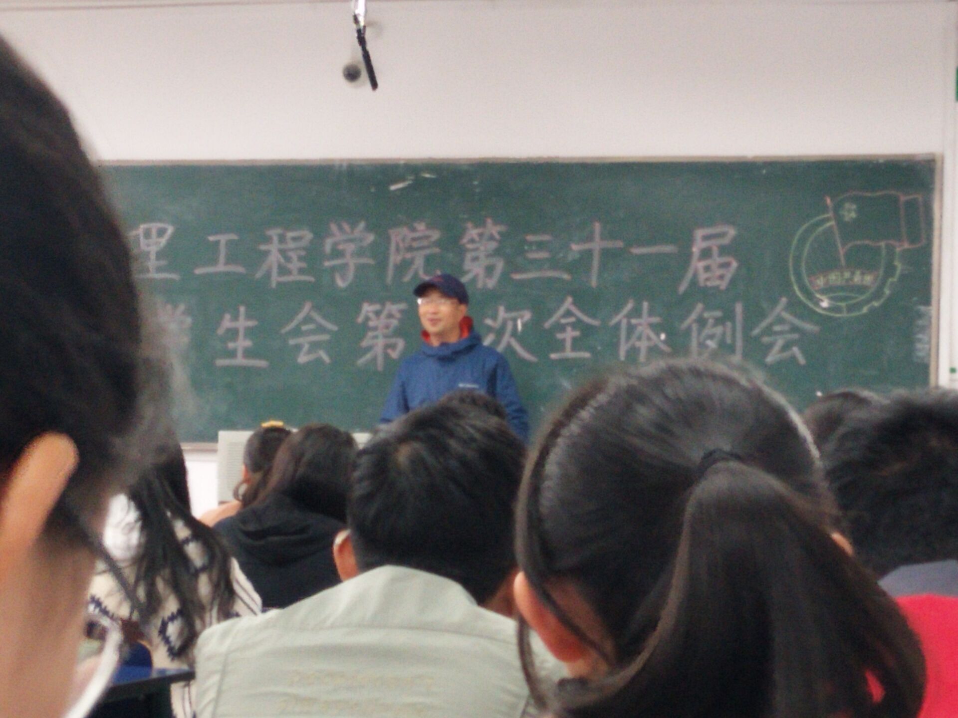 朱文明老师在讲话中首先对大一同学们表示欢迎,他们让学院团委学生会大家庭有了新成员和新动力,随后介绍了学院团委学生会各部门组成情况,以及近几年来的改革和取得的成绩,不管在哪个部门工作,都是为全院同学服务,希望同学们认识到作为学生干部的责任与使命,更有思想觉悟和自律精神。