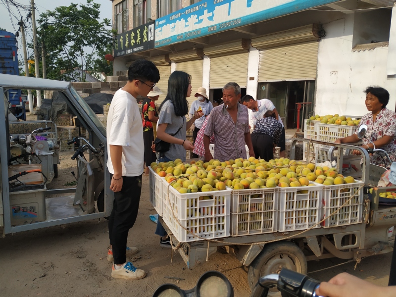 3日下午,队员们实地考察了当地的果农市场,由于电商的营销方式还不能在村民中普及,所以当地果农大部分还是使用传统的销售方式,先用车运到农贸市场,再由水果贩子收购售卖水果。在走访过程中,大家询问果农近几年水果的销售情况,果农表示水果的价钱每年都会不同,年份好的时候价钱好销量也高,但有些年份水果滞销贱卖,不仅价格很低而且会有大量卖不出去,白白浪费掉了。靠这样单一的销售方式确实给果农带来了太多不稳定因素,无法给果农带来较稳定的年收入。团队成员询问了果农是否了解或接触电商销售方式,通过多位果农的叙述,了解到村子里有几户果农已经开始通过电商来销售水果了,效益还不错,但是电商的成本也高,包装、物流和水果保鲜等方面都是不可避免的成本,同时果农大部分还都是普通的农民,对电商方面的工作也不是很会运营,所以电商模式还不能做到大范围普及。