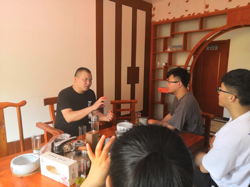 74日上午,团队来到了天华镇龙头企业画里天华有限公司调研,公司老总曹双乐热情介绍了天华镇茶果产业的发展历史及如今发展状况,带大家品尝了当地种植的茶叶,茶叶汤色清澈,叶底匀嫩,滋味醇和,香气持久。之后,曹总带领团队们参观了占地两万多亩的茶果种植基地和茶叶生产车间以及他最近新开发的产业——特色茶家乐。茶家乐是通过宣传茶文化和娱乐有机结合的方式,来吸引消费者的目光,扩大当地人流量,从而在提高当地知名度的同时,提高利润。