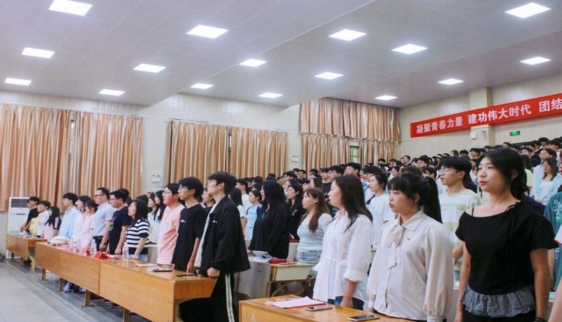 最后,全体师生肃立齐唱《中国共产主义青年团团歌》,青春誓言在激昂旋律中久久回荡。