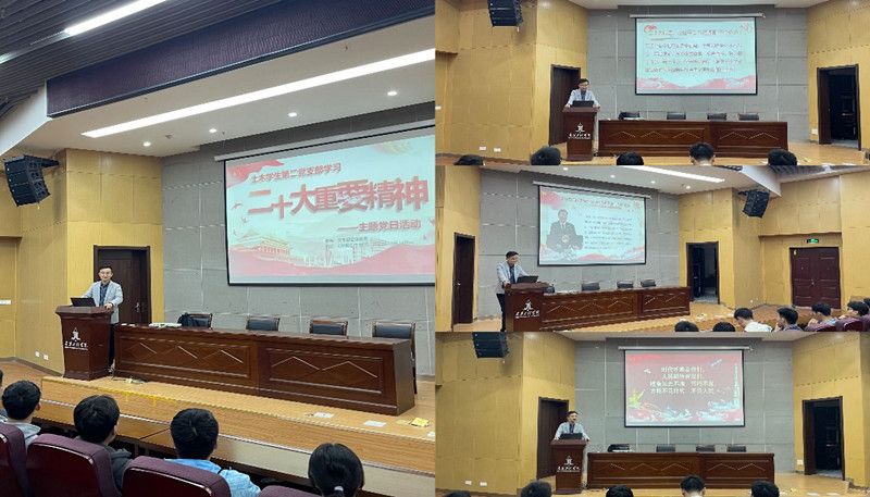 为了认真学习贯彻党的第二十次全国代表大会精神,全面贯彻习近平新时代中国特色社会主义思想,10月24日晚,土木工程学生第二党支部在C座三楼报告厅开展学习“党的二十大精神”主题党日活动。