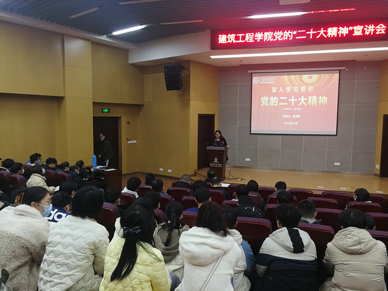 12月9日下午,建筑工程学院党委在C座三楼报告厅举行党的二十大精神宣讲会,校宣讲团成员、经济与管理学院国际贸易系主任章秀琴教授应邀作专题报告,学院全体教职工、部分学生党员聆听了报告。报告会由学院党委书记李烨主持。