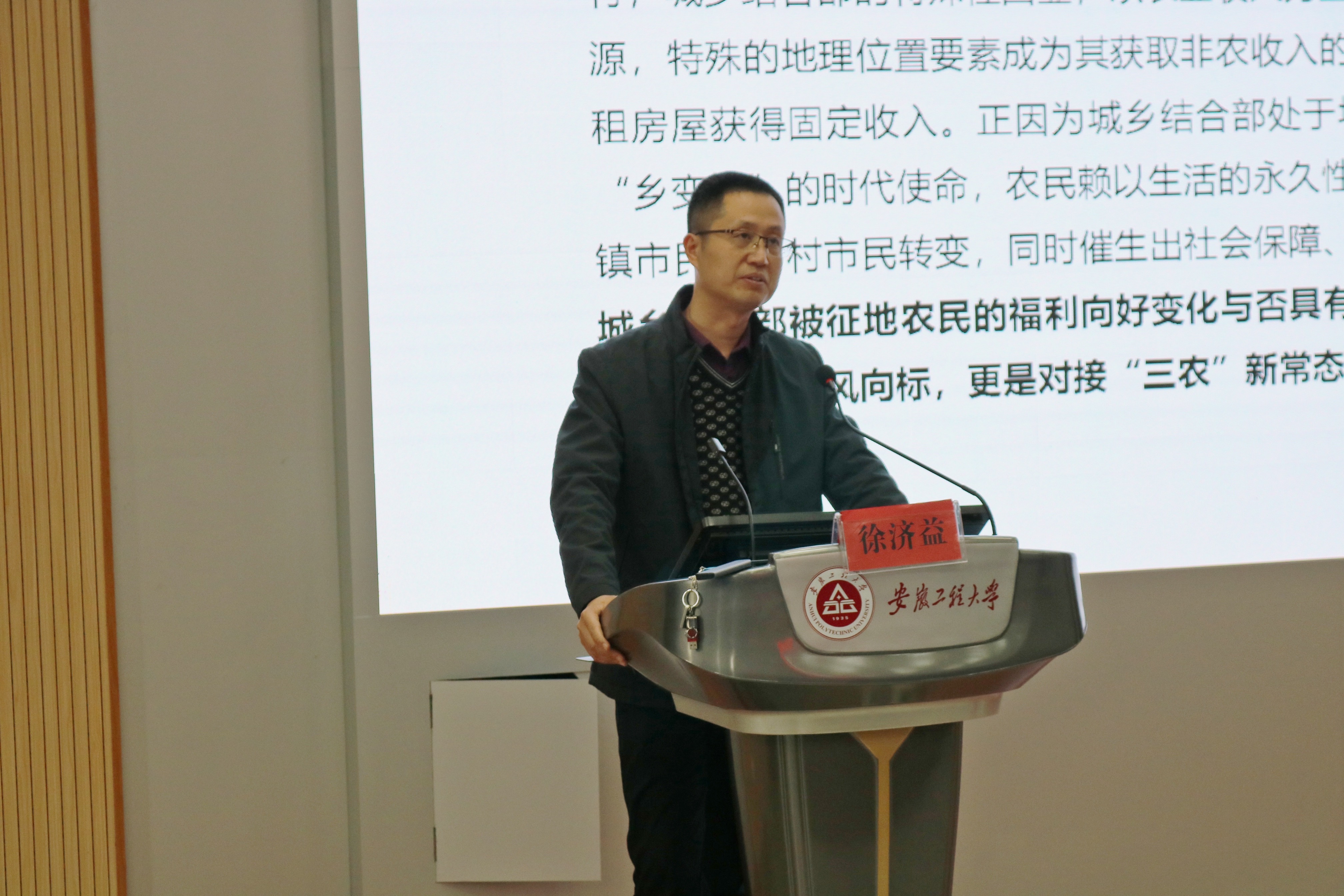 4月16日下午,安徽工业大学公共管理与法学院院长徐济益教授应邀来我校作题为“城乡结合部被征地农民福利问题探讨”的学术报告。学院部分教师和行政管理专业部分学生参加了报告会,报告会由人文学院副院长周伟教授主持。