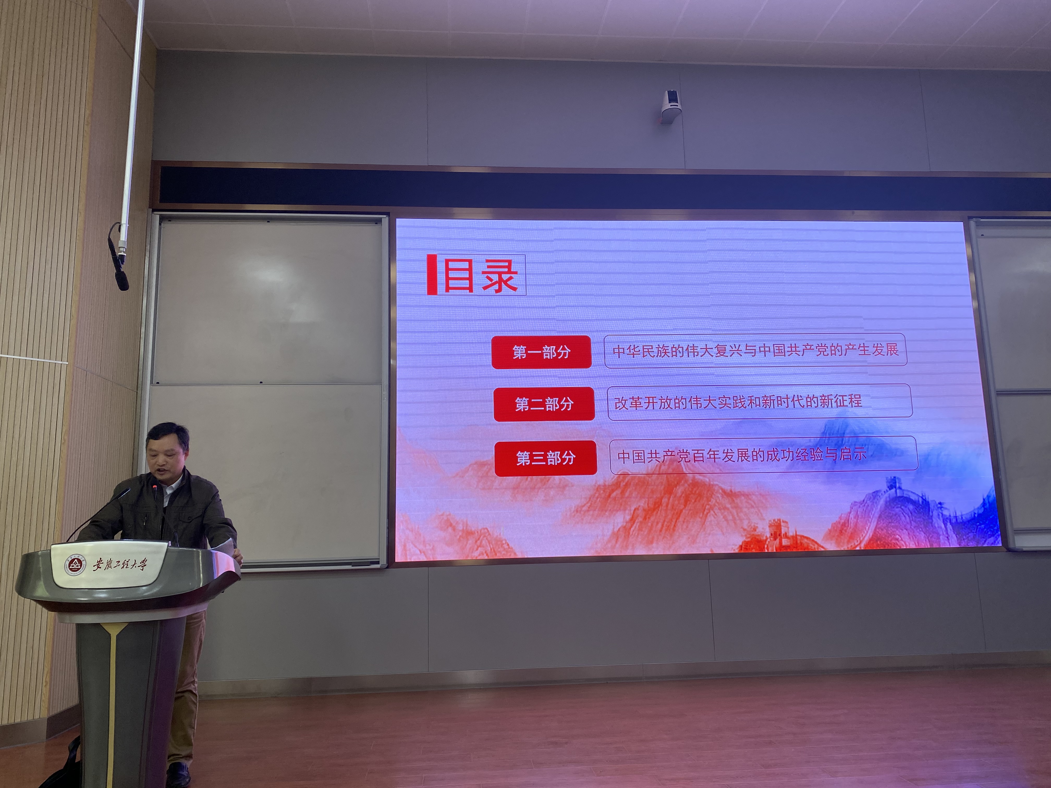 4月17日,人文学院党委在2教报告厅开展党史学习教育。学院党委书记邓英扣作题为《中国共产党百年历程与启示》专题报告,党员教师代表、党员培训班、发展对象培训班、入党积极分子培训班学员共150余人参加学习。