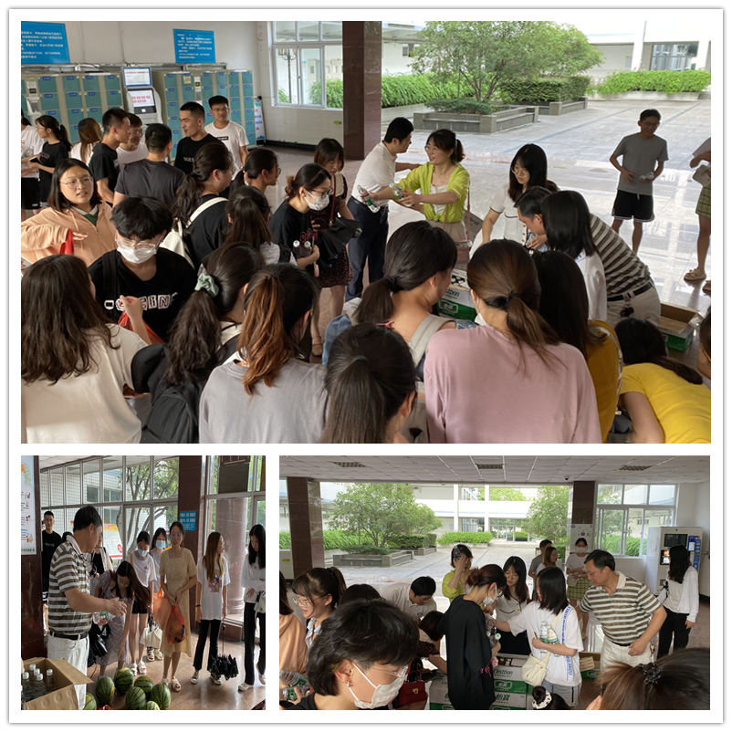 会后,为肯定同学们放弃暑期休息、留校潜心学习、备战考研的精神,人文学院给同学们发放了西瓜、矿泉水等防暑降温慰问品,同学们也深感温馨和感激,决心认真学习,回报母校。
