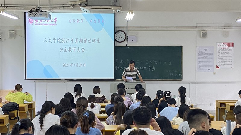 为深入了解暑期留校学生的学习、生活情况,提高同学们的安全意识,做好防汛防疫等工作,724日下午,人文学院在4111室召开了2021年暑期留校学生安全教育大会。人文学院党委书记邓英扣,团委书记(学工秘书)、组织员和全体辅导员出席了会议,人文学院在校全体学生参加了会议。