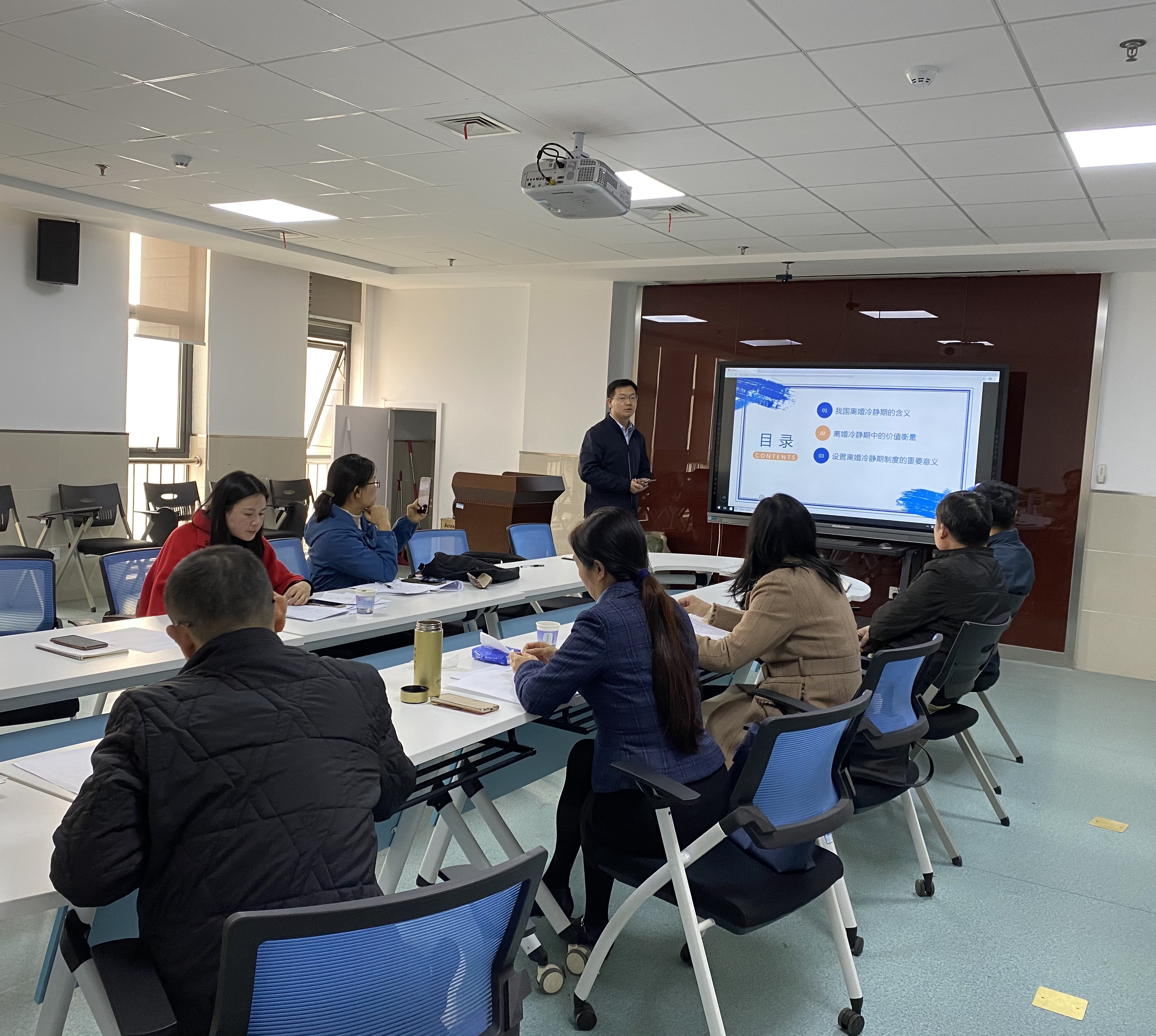 拟参加校教学创新大赛和“课程思政”说课比赛的教师,详细介绍了教学创新方式方法、教学过程组织、教学内容设计、教案制作、教学语言组织、思政元素和教学内容的融合等。参会人员肯定了参赛教师的教学过程能突出学生的主体地位,教案的设计能较好达成教学目标,教学方式的选取能有效提高学生学习兴趣和学习能力。同时,也从如何合理选用信息技术、数字资源和信息化教学设施,如何优化教学过程,如何有效解决教学重难点问题,如何有效提炼思政元素等方面,提出了宝贵的意见和建议。