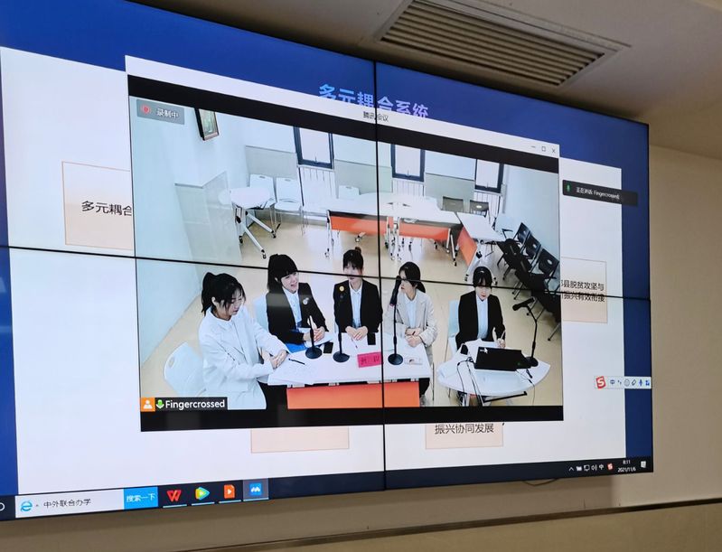 本次大赛分论文撰写、线上汇报、专家提问、总结陈词四个环节。论文撰写阶段,参赛队员多次前往霍邱县乡村振兴局进行实地调研,全面掌握第一手资料,高质量完成参赛文本的撰写;线上决赛时,率先出场,队员们顶住压力、沉着冷静、有条不紊地汇报了课题内容和研究成果,高质量回答了评委老师的提问,得到了现场老师的充分肯定。