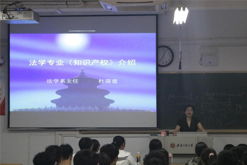 法学系主任杜蓓蕾向新生们介绍了法学专业的发展历史、未来前景、课程设置;展示了模拟法庭、辩论赛等法学专业所特有的人才培养模式;阐述了作为优秀法治人才在大学期间应当培育的能力。现任安徽天谛律师事务所合伙人2014届优秀校友熊瑶以自身的学习和工作经历勉励同学们在新的起点、新的环境中,认真做好职业规划,努力学习专业知识,并回答同学们提出的问题。