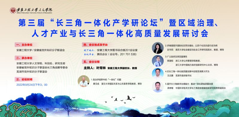 学术报告预告:第三届“长三角一体化产学研论坛”暨区域治理、人才产业与长三角一体化高质量发展研讨会