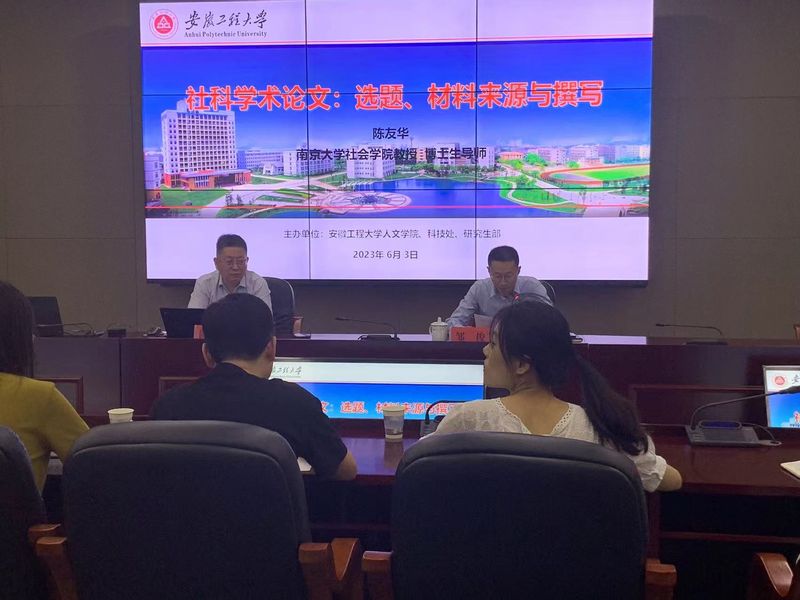 2023年6月3日上午,人文学院在图书综合楼201会议室举办“学术月”系列活动之专家论坛,南京大学社会工作与社会政策系主任、南京大学河仁社会慈善学院院长、博士生导师陈友华教授应邀为人文学院师生作了一场题为“社科学术论文:选题、材料来源与撰写”的学术报告。人文学院青年教师、研究生参加报告会,报告会由人文学院副院长邹俊主持。