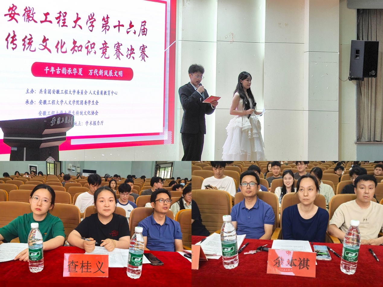 为弘扬中华优秀传统文化,厚植家国情怀,6月10日,由校团委、人文素质教育中心主办,人文学院团委学生会、校大学生传统文化协会承办的校第十六届传统文化知识竞赛决赛在学术报告厅举行。校团委书记、党委学生工作部副部长李恒奎,校党委宣传部副部长查桂义,人文学院党委副书记余本祺,校团委组织宣传科科长孙琳瑶,人文素质教育中心办公室主任徐征,人文学院团委副书记利昕云参加活动。经现场角逐,墨韵鸿儒队夺得桂冠,剪纸小分队、墨染惊鸿队获二等奖,守正创新队、纸韵纤痕队获三等奖。