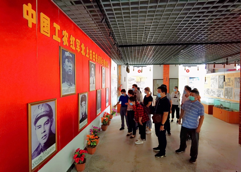 大家先后参观了粟裕大将陈列馆和红军抗日先遣队陈列馆,图文并茂的展板,全方位展现着谭家桥战役的历程;枪支炮弹、通行证、钱币……印满岁月痕迹的历史文物,讲述着红军将士浴血奋战的革命故事。