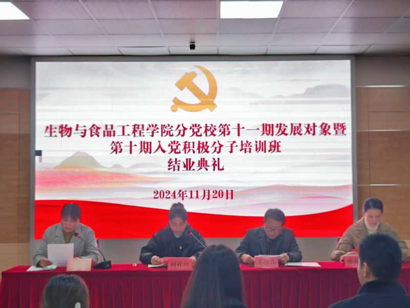 11月20日,生物与食品工程学院分党校在学院虚拟仿真中心举办第十一期发展对象暨第十期入党积极分子培训班结业典礼。本期培训班全体学员参加结业典礼,学院党委副书记王彦青、学院团委负责人、辅导员代表出席典礼,典礼由培训班班主任王玲玲主持。