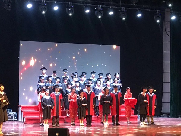 演出开始前,郭校长发表了热情洋溢的致辞,他对体育表演专业14级学子在校期间所取得的成绩给予了高度认可,对同学们的未来提出殷切期望,并希望大家牢记“尚德敏学,唯实惟新”的校训,志存高远、不懈奋斗,与母校共创美好未来!汇报演出以“致敬我们的四年”为主题,回顾了全体14级体育表演专业同学一起走过的四个春秋。本场演出共有12个精彩的节目组成,形式多样、风格各异,同学们用四年来的汗水和努力,化为了扎实的基本功、优美的舞姿通过本次汇报演出完美地展现给了在场的所有观众,向老师们的辛勤付出交上了一份完美的答卷,是献给母校最好的毕业礼物。在毕业典礼阶段,四位导师代表为每一位同学整理衣帽,拨正流苏。