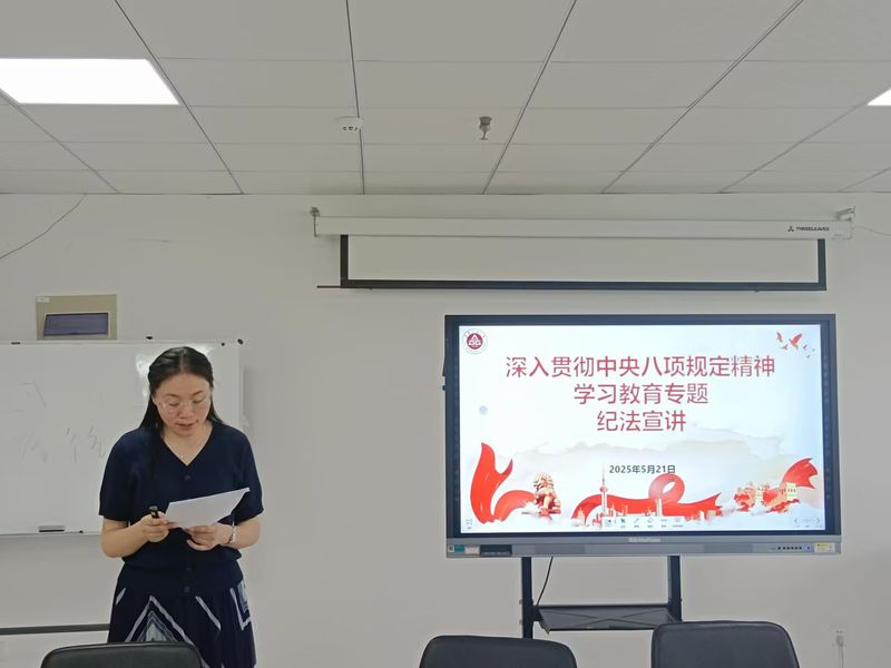 汪丹莉从三个方面进行宣讲:一是锲而不舍落实中央八项规定精神,推进作风建设常态化长效化;二是提高政治站位,正确履行经济责任,增强风险防范意识;三是弘扬教育家精神争做新时代“大先生”。整个宣讲深入浅出、环环相扣,既有理论阐释,政策解读,又有案例剖析和警示,对学院开展深入贯彻中央八项规定精神学习教育起到了很好的推动与促进作用。